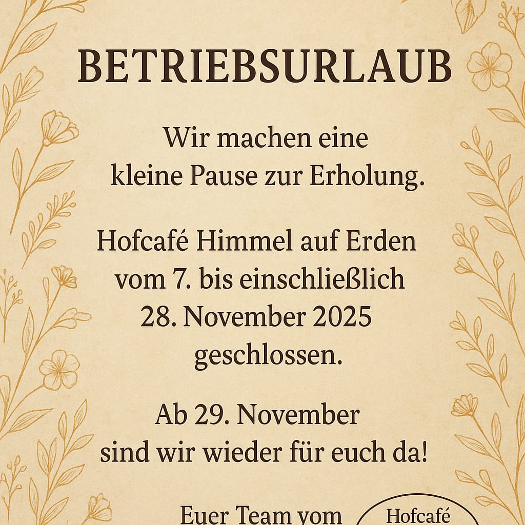 es fällt uns sehr schwer, euch mitzuteilen, dass wir unser Hofcafé nach kurzer Zeit schließen müssen. Unsere Pläne waren andere – doch das fehlende Startkapital macht ein Weiterführen leider unmöglich.
